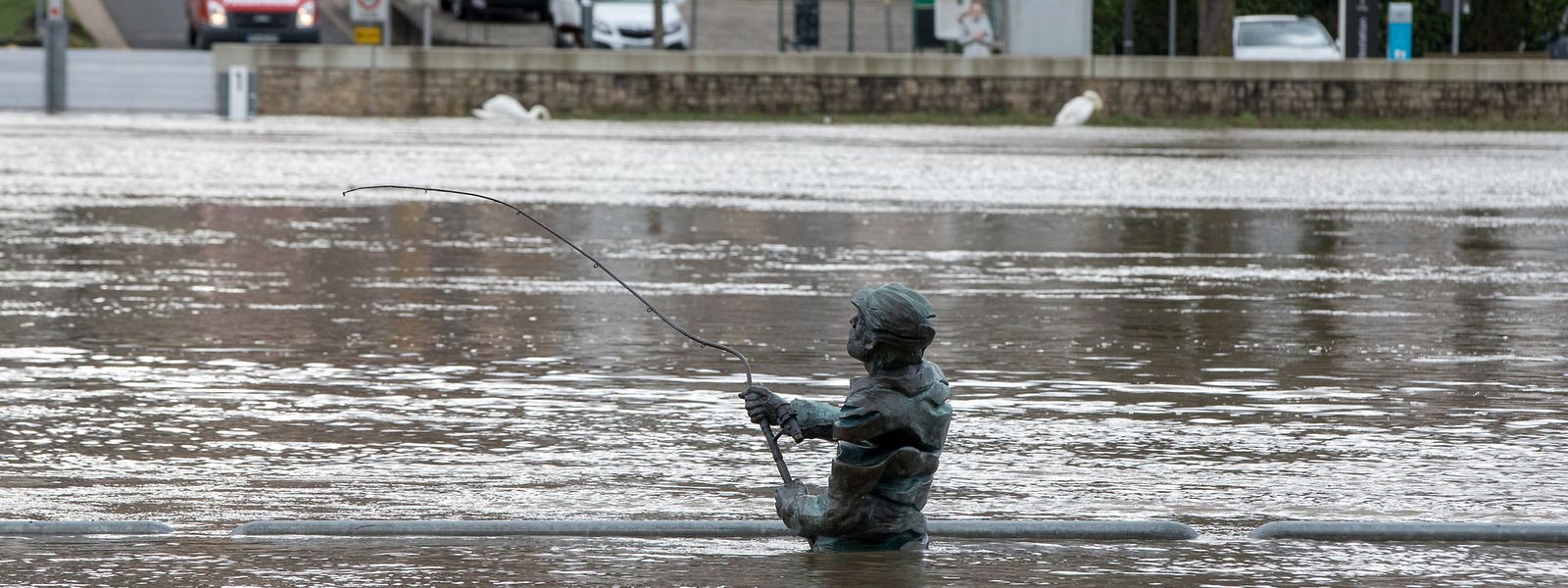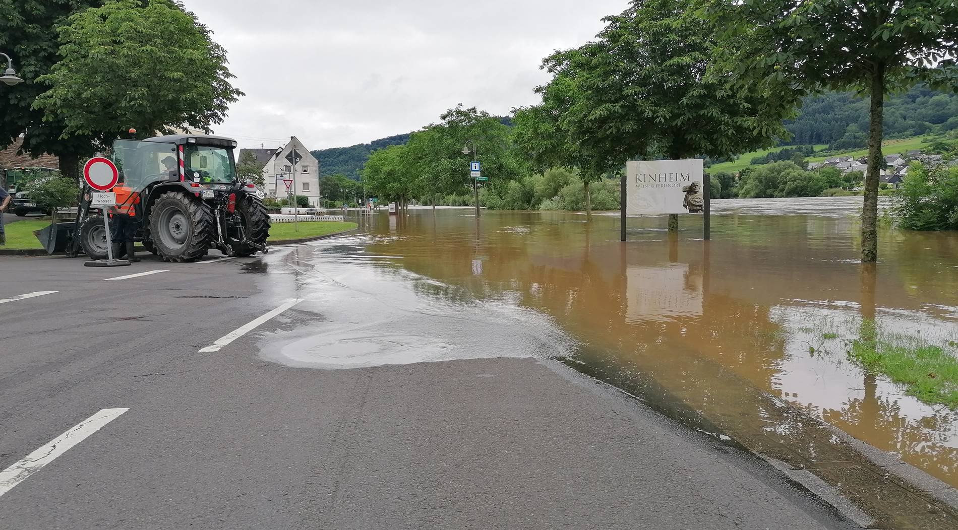 Das hochwasser der mosel hat eine straße überschwemmt.